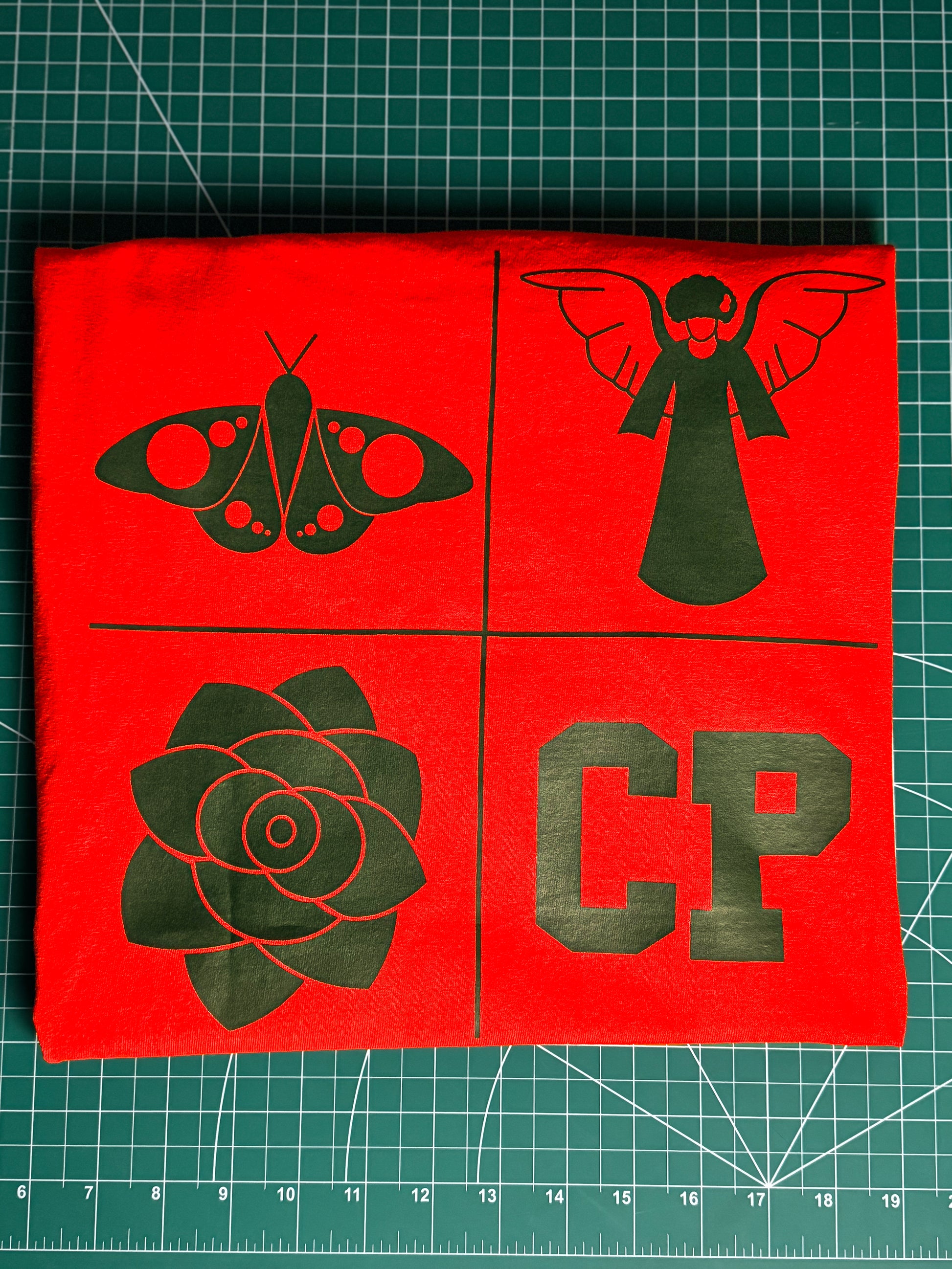 Vibrant Orange, Heavy-Weight T-shirt with Hunter Green design.